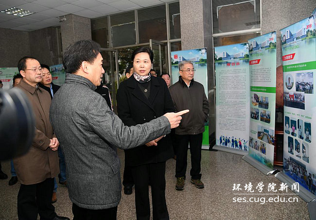 王艳玲参观18小说 师生野外实习风采展,详细询问张国旗班情况。