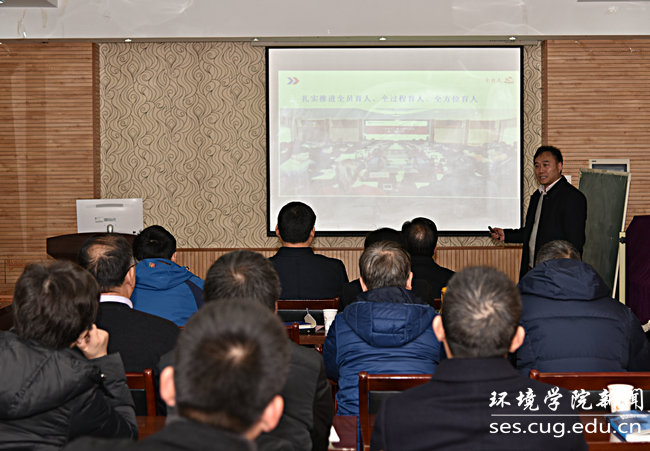 学院党委书记李素矿作“三全育人与一流本科教育”专题报告。他围绕培养什么人、怎样培养人、为谁培养人,从国家、学校、学院三个层面畅谈了自己对一流本科教育的认识,要聚焦一个根本任务、两个主要群体、三个育人格局、四项关键成果、五项重点工作,打造价值取向与党和祖国人民同心、学术方向与政治方向同向、学术卓越与思想卓越同行、人格魅力与学识魅力同在的一流本科教育。强调要用一流党建引领一流本科教育,将学院现有组织管理、名师团队、科研项目、学科专业、平台基地、实践活动、两种市场两种资源等育人资源优势,有效转化为一流本科教育教学优势,突显学院跨学科教育和跨学科研究育人特色;要推进教育部“三全育人”综合改革试点学院工作,精细打造以内容为王、以育人为本“1+6”育人载体,积极探索美丽中国“4+N”环境地球科学类课程思政模式,实现全员、全过程和全方位育人,实现学院高质量发展和内涵式发展。