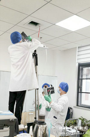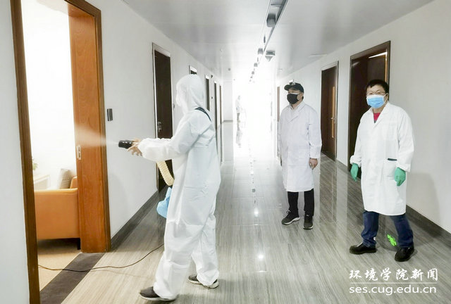 4月29日,学院党委书记李素矿,副书记姜明敏,院办主任左麦枝、实验中心主任潘欢迎等在科教楼四检查指导消杀工作。明确任务,提出要求,保质保量地做好消毒,为师生创造良好的学习和工作环境,让师生放心安心。