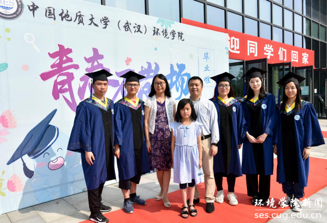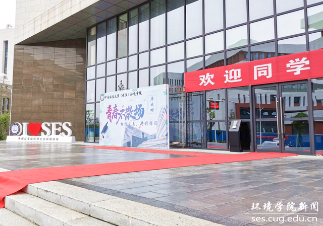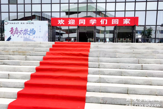 科教四楼早早装扮一新,门口铺上了红毯,一幅“小水滴”喷绘竖立在大门一侧,精心设计的“I ❤ SES”移动背景字模型尤为亮眼,一切摆设布置只为迎接2020届毕业生回家。