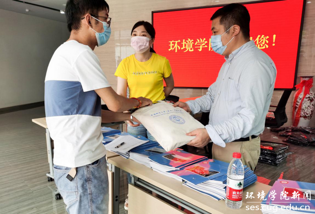 学院领导在科教四楼大厅欢迎毕业生同学回家,为同学们送上学院用心准备的毕业大礼包。