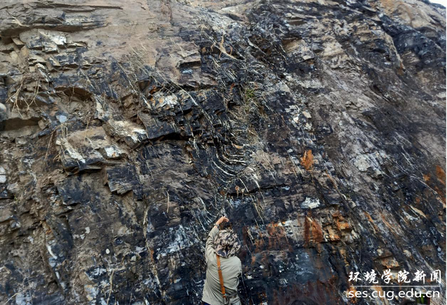 “在滚石坳水井沱组,我找到了非常典型的“海绵骨针”——黄铁矿,祁老师对我说‘你是个功臣’,瞬间就感受到了野外学习的乐趣”刘宇杰同学说。