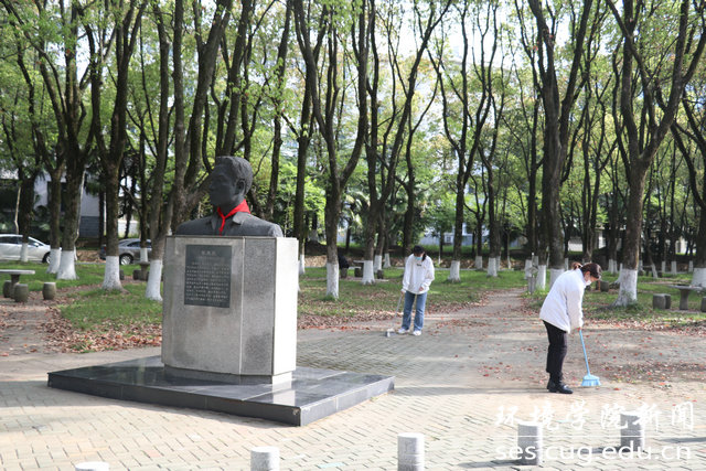 到场师生对张国旗雕像及周边环境进行清洁打扫,使雕像焕然一新。