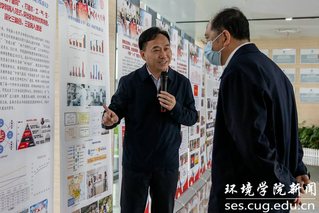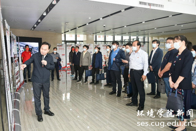 百余名参加湖北省高校党建工作现场推进会的全省八十多所高校的党委组织部部长、院系党组织书记参观成果展。学院党委书记李素矿讲解。