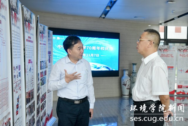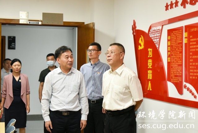 在一楼学院党建双创成果展前,简要介绍了学院党建与思政工作总体情况,重点汇报了红专能优生态环保铁军育人体系制度设计、水-土-气-生-环跨学科教育范式、张国旗班行动计划、美丽中国4+N课程思政、1+6党建资政育人载体等党建思政工作的主要做法、成功经验、标志成果、育人成效和社会反响。