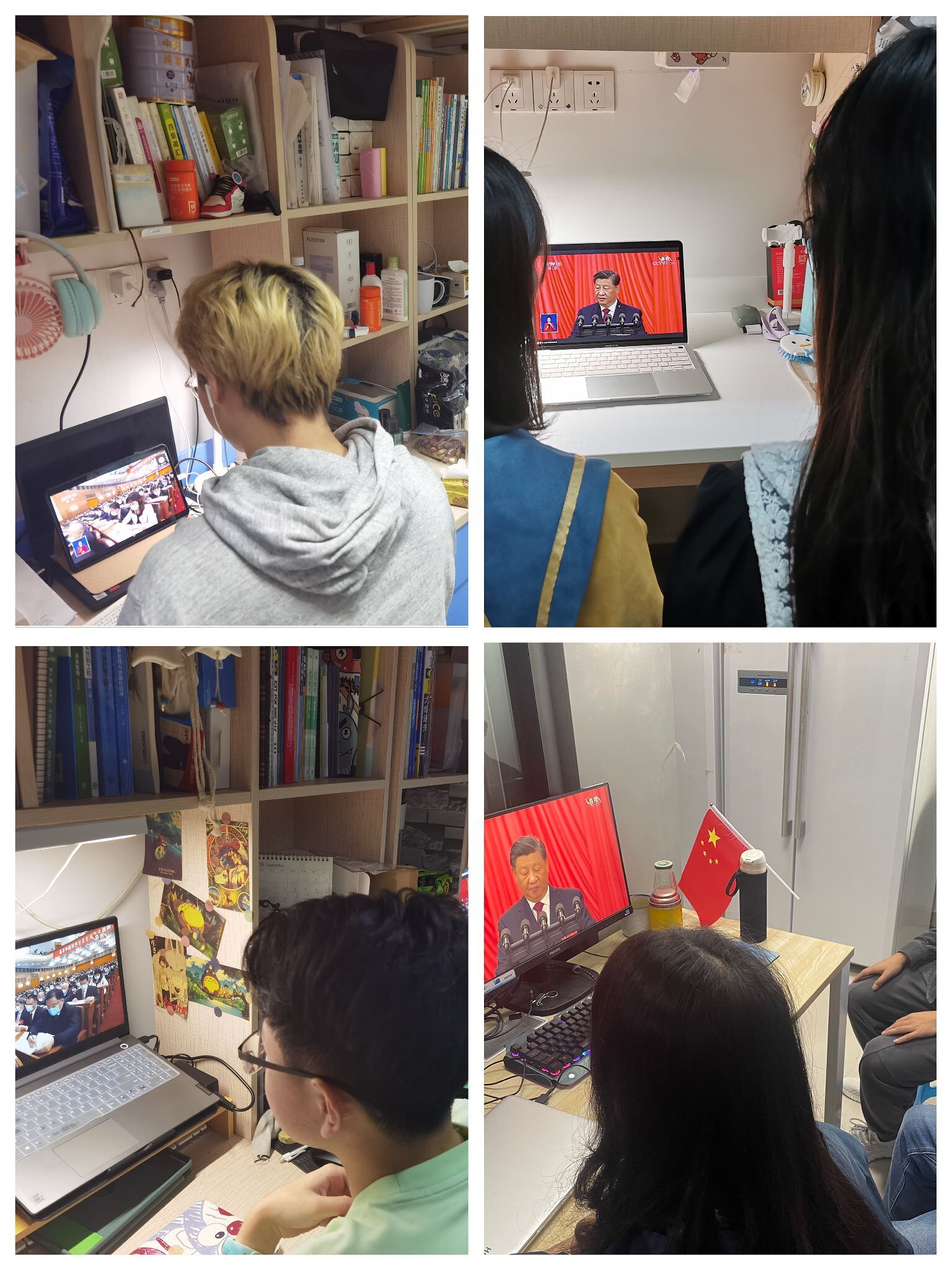 “张国旗班”在科教楼四310党员活动室收听收看大会实况