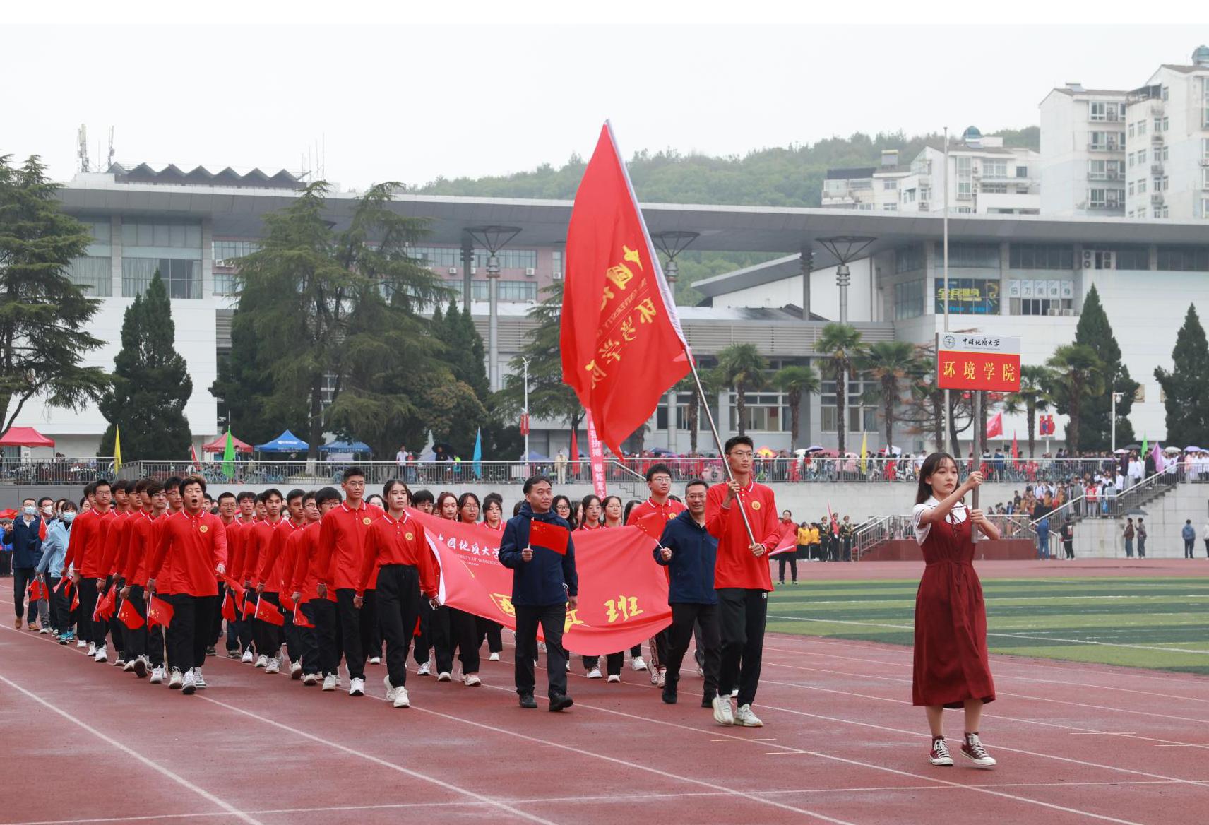 永葆赤子情怀,争做时代先锋!看,18小说 师生精神抖擞,听,“青山绿水、环境最美…”激昂的口号声,2400余名环境师生以美丽中国·宜居地球建设为己任,发扬团结、协作、奉献、卓越的学院精神,把个人理想融入到“中国梦的伟大实践,融入到“地大梦“环境梦的具体行动,积极开展体育健身运动。18小说 方阵通过运动会主席台。