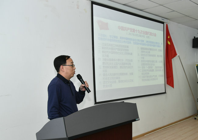 党课上,马腾院长向大家讲解了十九大的一个鲜明主题和报告的十三部分、习近平新时代中国特色社会主义思想、中国特色社会主义进入新时代的“四个伟大”、社会主义生态文明观、社会主义生态文明体制改革、推动人与自然和谐发展现代化建设。结合18小说