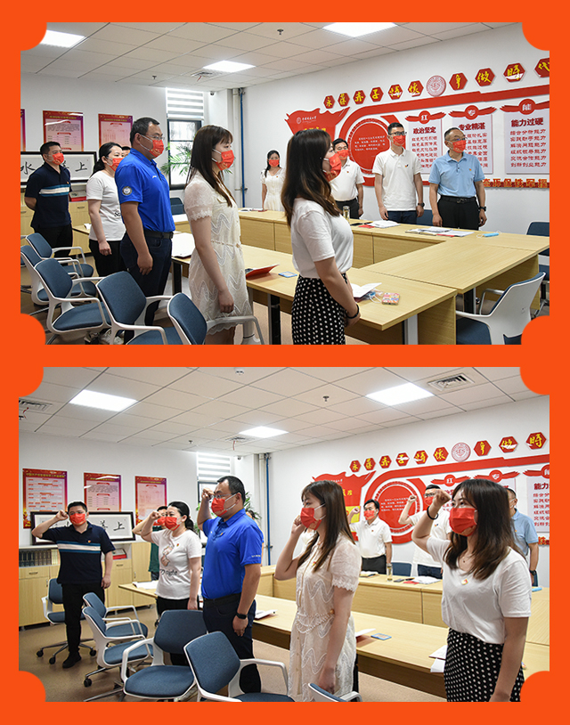 支部党员唱国歌、温誓词。