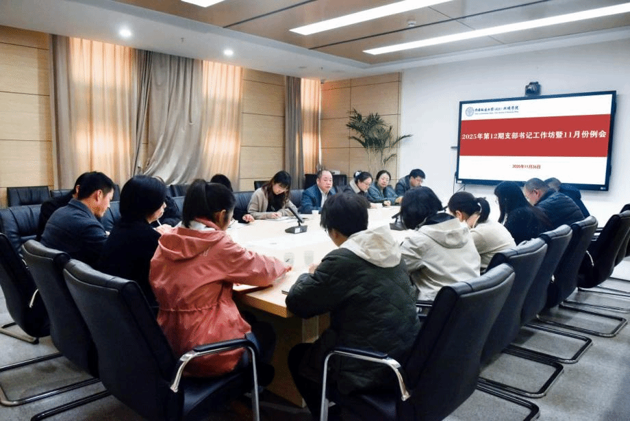 2025年第12期支部书记工作坊暨11月份例会在科教楼四308室召开,会议采取线上线下同步进行。学院党委书记姜明敏,全体教工党支部书记、支部委员、组织秘书和党建辅导员等参加会议。姜明敏主持会议。
