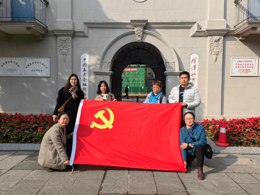 支部书记严冰带领全体党员面向党旗重温入党誓词。随后,支部成员先后参观中共五大会址纪念馆与毛泽东旧居。在中共五大会址,通过实物陈列、场景复原、多媒体展示等多种形式,深入学习陈潭秋等革命先烈的英勇事迹,深刻铭记中国共产党在大革命关键时期的艰难探索与重大贡献,感悟革命先辈为理想信念不惜抛头颅、洒热血的崇高气节。在毛泽东旧居,支部成员驻足凝视当年的居所与办公场景,重温毛泽东同志在武汉期间的革命实践与理论探索,深切体会老一辈无产阶级革命家扎根群众、艰苦奋斗的优良作风。