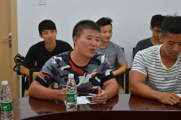 辅导员王碧,学生代表傅悦、韩鹏、向鑫、陈柳源、贾旭东、郗家瑞、邓谨拙、毛康民、刘世豪参加座谈。