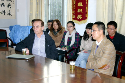 应王焰新校长邀请,美国科学院院士Donald DePaolo教授来 18小说 交流访问并作学术报告。2012年11月14日上午校长王焰新教授及18小说 部分师生与Donald DePaolo教授在文华楼会议室就地热领域研究进展开展学术讨论。郭清海教授、蒋宏忱教授、李平博士分别就各自的研究情况作了交流。(左麦枝/文 宋瑜/图)