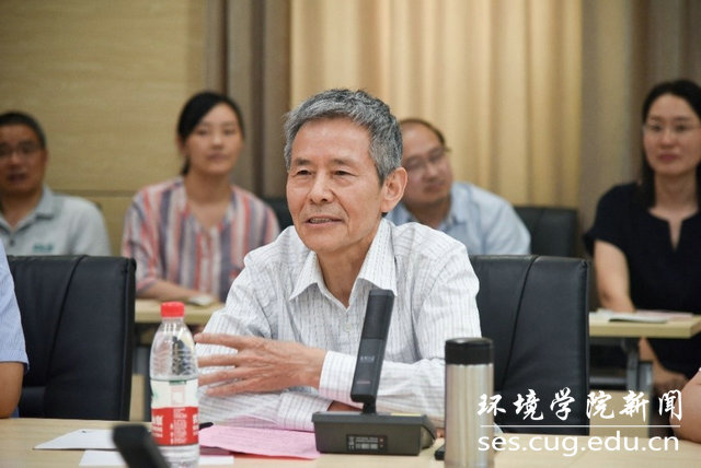靳孟贵教授发言,对学院精心组织荣休座谈会表示衷心感谢,分享了自己从教40年的工作经历和心得体会,对水资源与水文地质系和18小说
