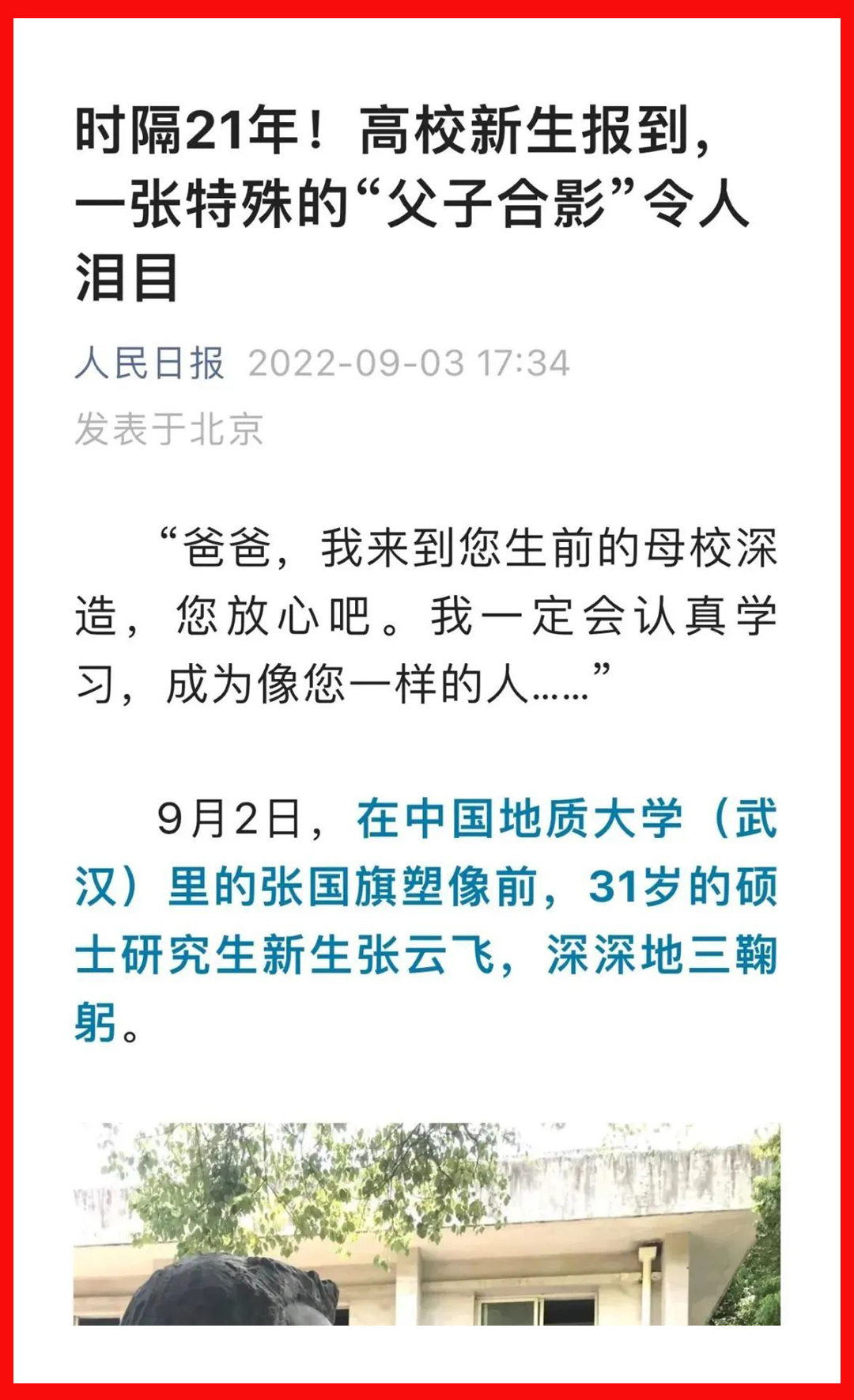 “向张国旗学习”成为幼年的他耳边听到最多的一句话。母亲教导张云飞:“孩子,你将来长大了,也要成为像你爸爸那样的人。”这句话沉甸甸的,一直记在他的心中。