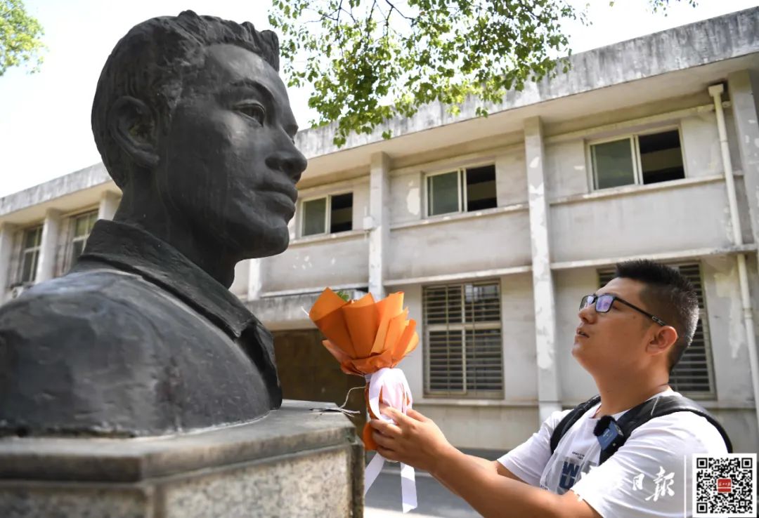 赶到南望山校区父亲雕像前