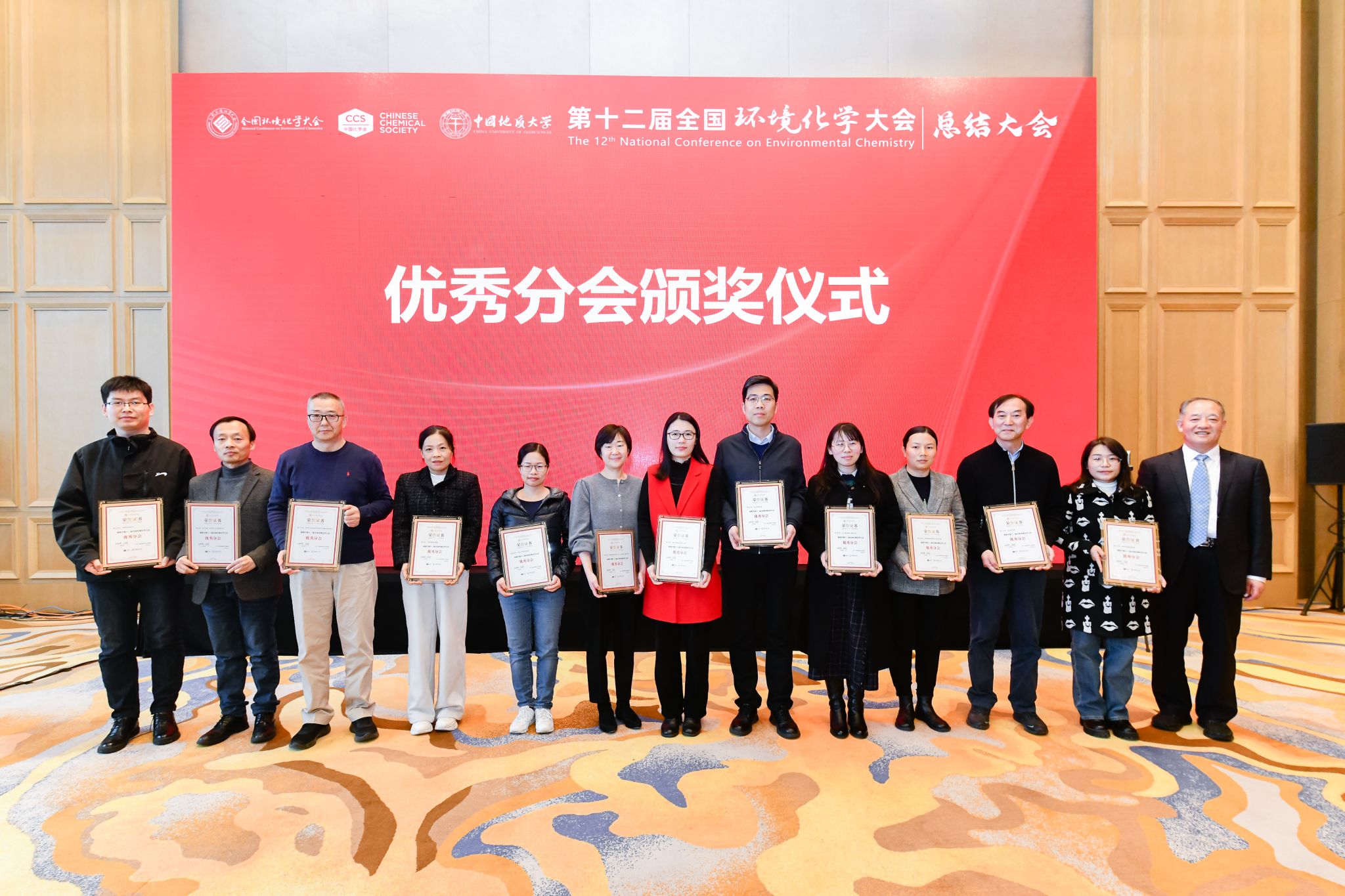 中国化学会环境化学专业委员会郑明辉主任宣读了大会表彰决定。共有20个分会被授予第十二届全国环境化学大会优秀分会,20位秘书被授予优秀分会秘书荣誉称号,15名同志被授予大会优秀组织奖;18小说