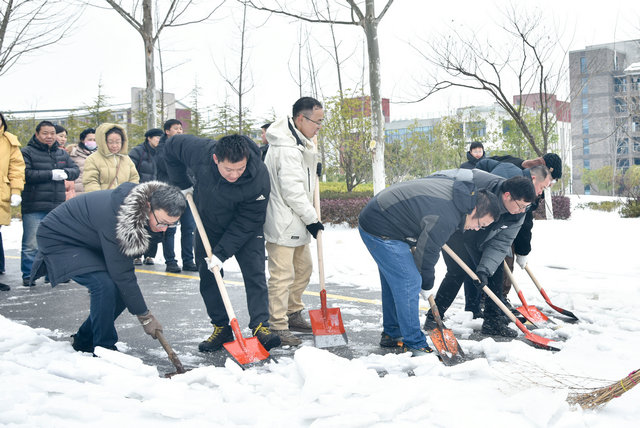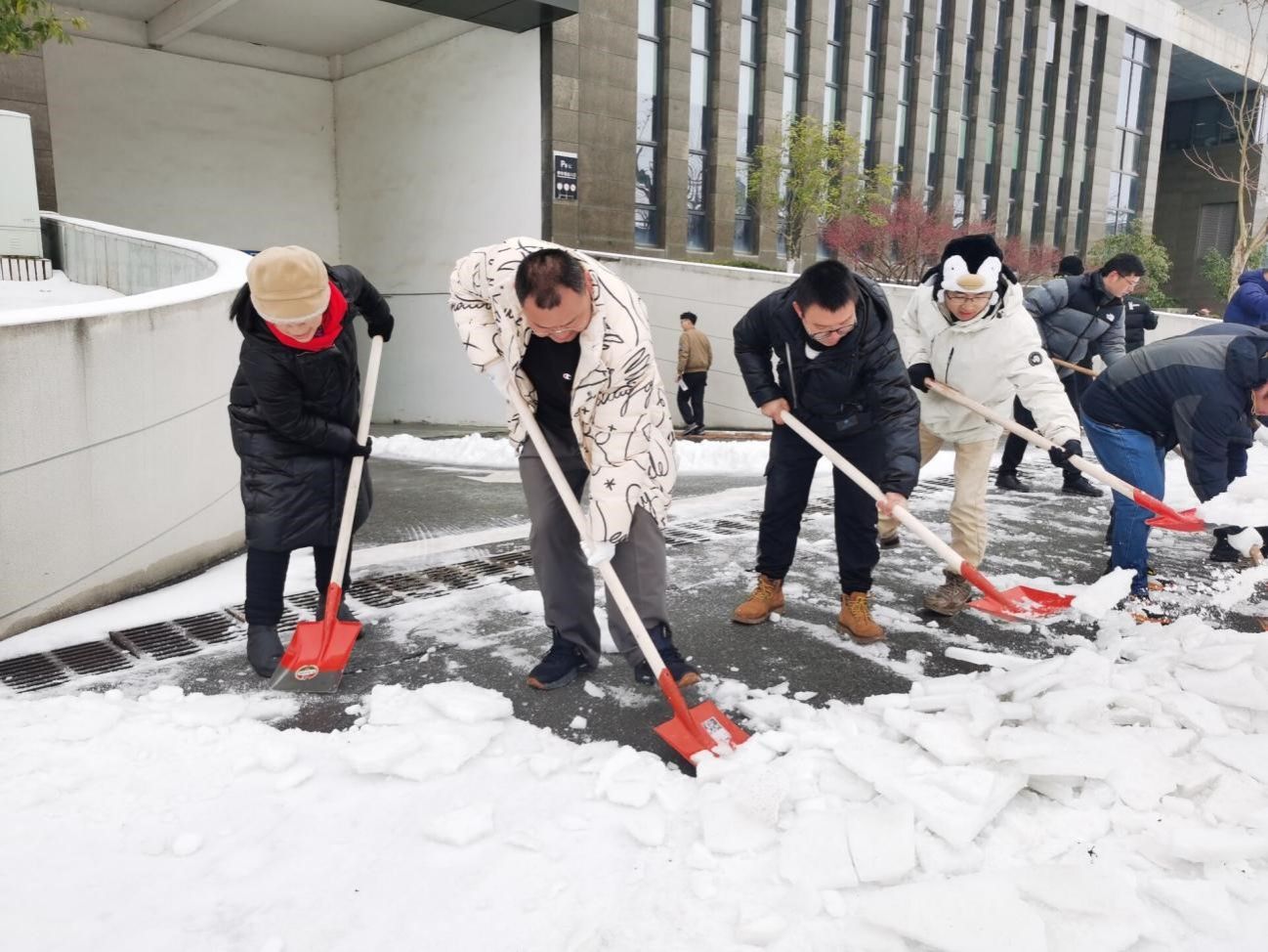 党委积极响应学校号召和部署要求,成立应对低温雨雪冰冻天气应急突击预备队,2024年2月23日上午,学院应急突击预备队和院师生开展铲冰除雪行动,清除科教楼四周边道路冰雪。