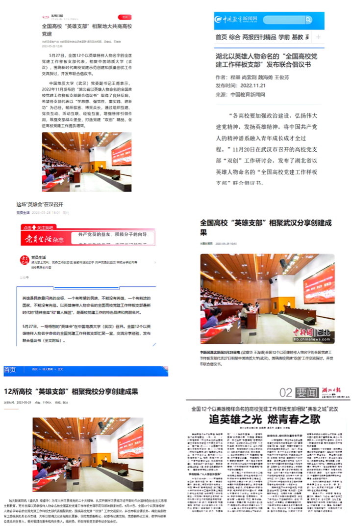 创新“党建+”学习模式,以学铸魂。支部通过持续的理论学习引领支部党员自觉接受政治洗礼和思想淬炼,深刻领悟“两个确立”的决定性意义,增强“四个意识”,坚定“四个自信”,做到“两个维护”。支部引领支部党员实现价值取向与党和国家人民同心、学术方向与政治方向同向、学术卓越与思想卓越同行、学识魅力与人格魅力同在,成为担当中华民族复兴大任的时代新人;组织支部党员学习党的二十大精神、习近平总书记在中国人民大学考察调研时的重要讲话精神、习近平总书记给山东省地矿局第六地质大队全体地质工作者的重要回信精神等;主办“学思想、强党性、重实践、建新功”——以英雄榜样人物命名的全国党建工作样板支部工作交流会,全国12个“英雄支部”齐聚地大,发布联合倡议,充分发挥样板支部示范引领作用;主办湖北高校“全国高校党建工作样板支部”工作交流研讨会,打造湖北高校党建特色品牌,彰显湖北高校党建群星效应;赴华北电力大学“吴仲华”党支部、江苏科技大学景荣春学生党支部开展调研交流;与校内外党支部联合学习党的二十大精神,与华中科技大学经济学院胡吉伟党支部举办“学习二十大·奋进新征程”学习交流活动,参加中国石油大学(北京)石油工程学院、中南民族大学党委组织部校际共建活动,与 18小说