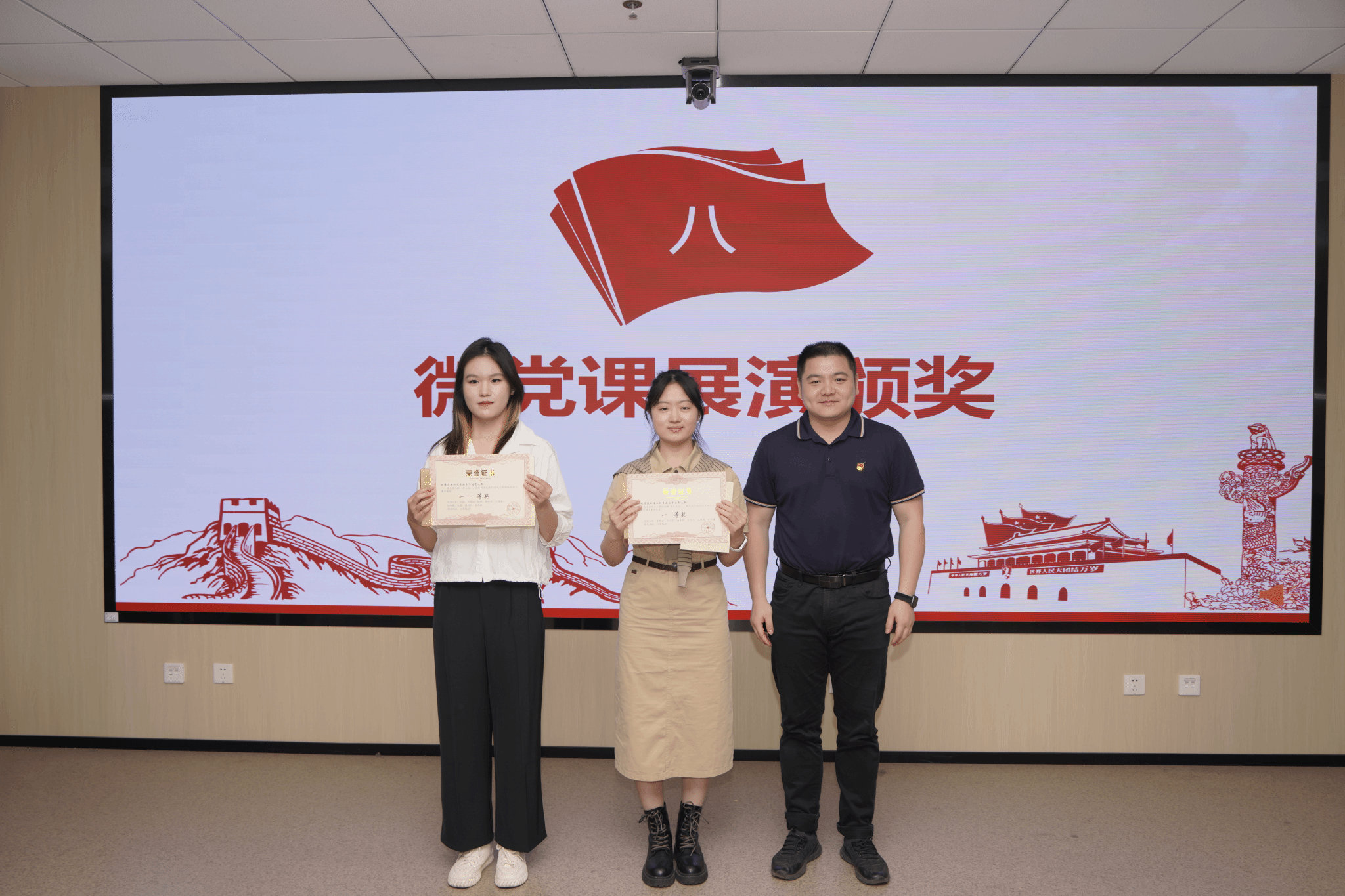 陈俊男为本次展演活动一等奖获奖支部颁奖。环境工程专业大学生党支部、水文专业大学生党支部2个支部获得一等奖。