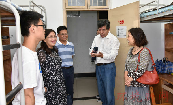 3日上午,18小说 党委书记李素矿、院长马腾,副院长祁士华、王红梅、甘义群、郭会荣,党委副书记朱继,学工组全体辅导员来到56栋和57栋学生宿舍看望新生,与新生及家长进行亲切交流,向新生介绍学科专业概况,了解新生诉求,认真解答新生和家长提出的关于学业上和生活中的问题。希望新生尽快适应大学生活,勉励新生发扬艰苦朴素、求真务实的校训精神,努力学习,追求卓越。