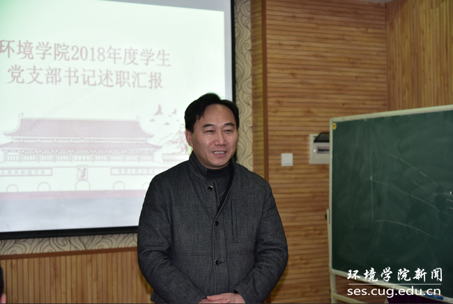 李素矿总结讲话。他代表学院党委对党支部一年以来取得的成绩和支部书记们的辛勤付出表示感谢。他希望各学生党支部坚持用习近平新时代中国特色社会主义思想武装头脑,认真落实上级党委的各项要求,对标“7个有力”,在学生党员的教育、管理、监督上下功夫,在组织、宣传、凝聚、服务同学上下功夫,进一步规范党内组织生活,落实好三会一课一评,不断提高党支部建设质量。共同打造一流学生党支部,加强党建带团建,切实发挥好学生党支部的战斗堡垒作用和学生党员的先锋模范作用,实现学院高质量内涵发展。在学院三全育人综合改革试点和“张国旗班”行动计划工作中找准位置,加强自育,使自己成长为德智体美劳全面发展的社会主义建设者和接班人,成长为政治坚定、专业精湛、能力过硬、素质优良的新时代环境学子。
