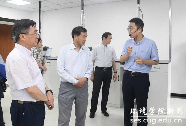 5月21日下午,中国气象局副局长宇如聪一行在未来城校区科教六楼参观湖北省大气复合污染研究中心。
