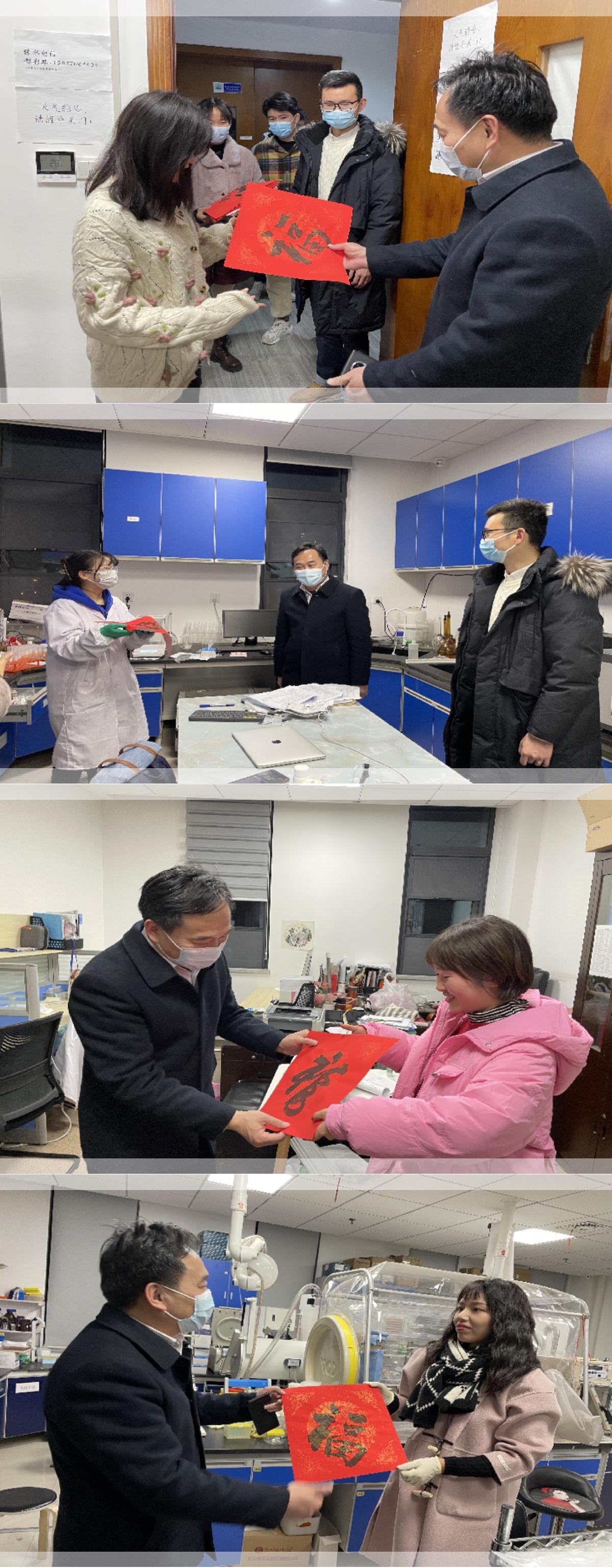 李素矿一行深入实验室、工作室为学生送上“福”字