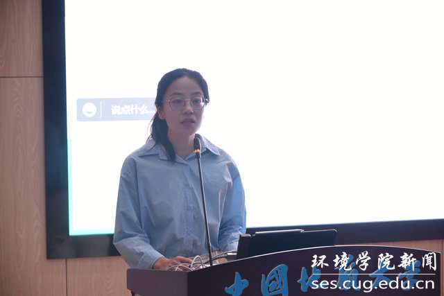 高年级研究生代表,2019级博士,国家奖学金获得者平雪发言。她回顾了自己的科研、生活经历和和提出了对学习生活上宝贵的经验,她表示,科研道路上应该和导师保持联系,营造一个和谐的导学关系;在学习过程中要持之以恒,锲而不舍的追寻知识,充分利用学校图书资源和科研平台提升科研能力;合理利用时间,提升科研效率。最后她激励同学们应该将自己青春年华投入到祖国的建设中去,并且希望大家能够勇敢追逐新生活,追寻新梦想。