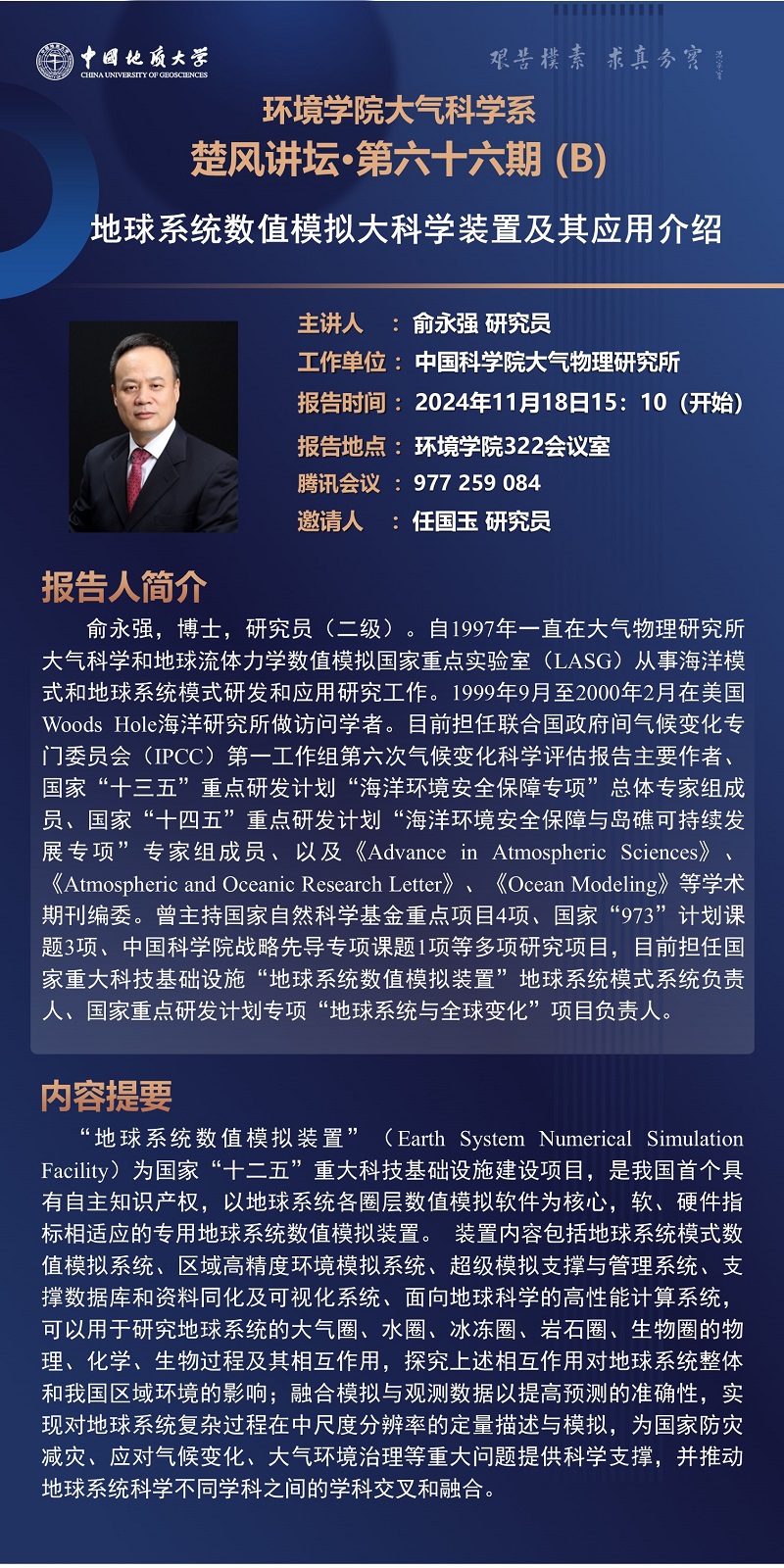 中国科学院大气物理研究所俞永强研究员学术报告