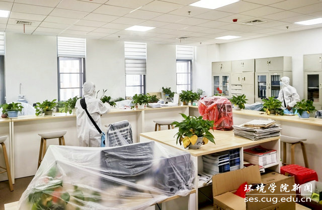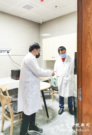 4月29日,学院党委书记李素矿,副书记姜明敏,院办主任左麦枝、实验中心主任潘欢迎等在科教楼四检查指导消杀工作。明确任务,提出要求,保质保量地做好消毒,为师生创造良好的学习和工作环境,让师生放心安心。