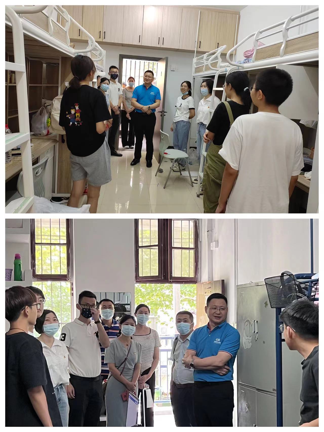 随后,副校长刘杰,学院副院长柴波、谢先军、党委副书记王海锋等老师一同看望南望山校区新生52栋、58栋宿舍,询问了18小说